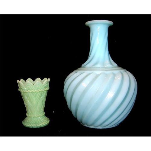 Beautiful Green and Sky Color as you can see in the pictures. The water recipient it used to be with a Glass to use in nights next to bed in the 1900s. In very good conditions, witth little chips in the bottom as you can see in the pictures.