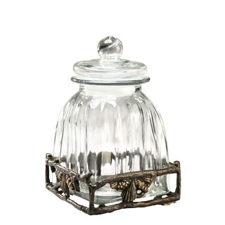 Pinecone Canister - 11"H 7"W 7"D - Cast Iron, Stailness Steel & Glass