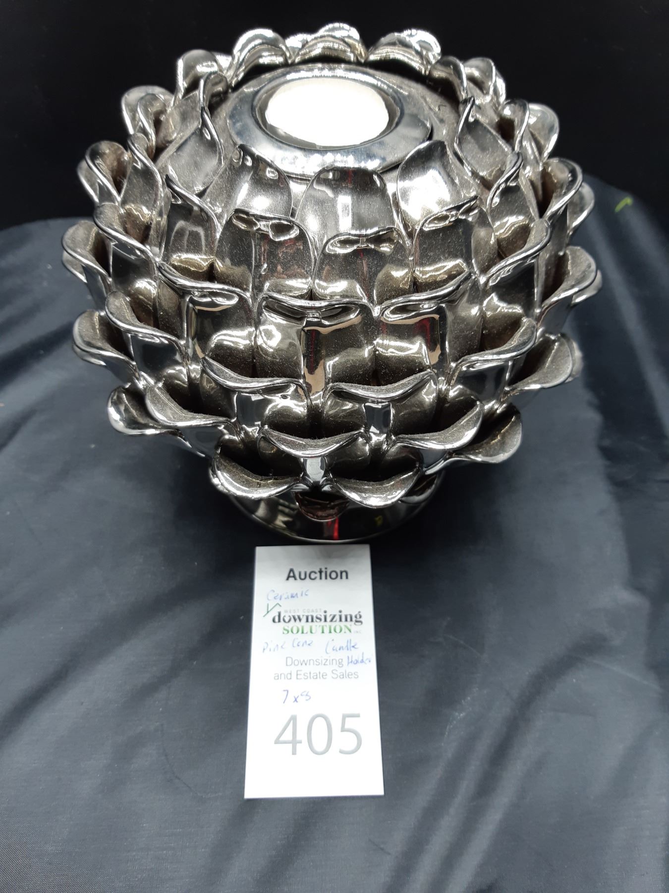7x5" Glass pine cone looking candle holder. Pickup at 10 am