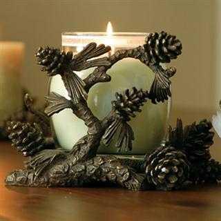 Pinecone Jar Candle Holder - 5"x8"x7" - Brass