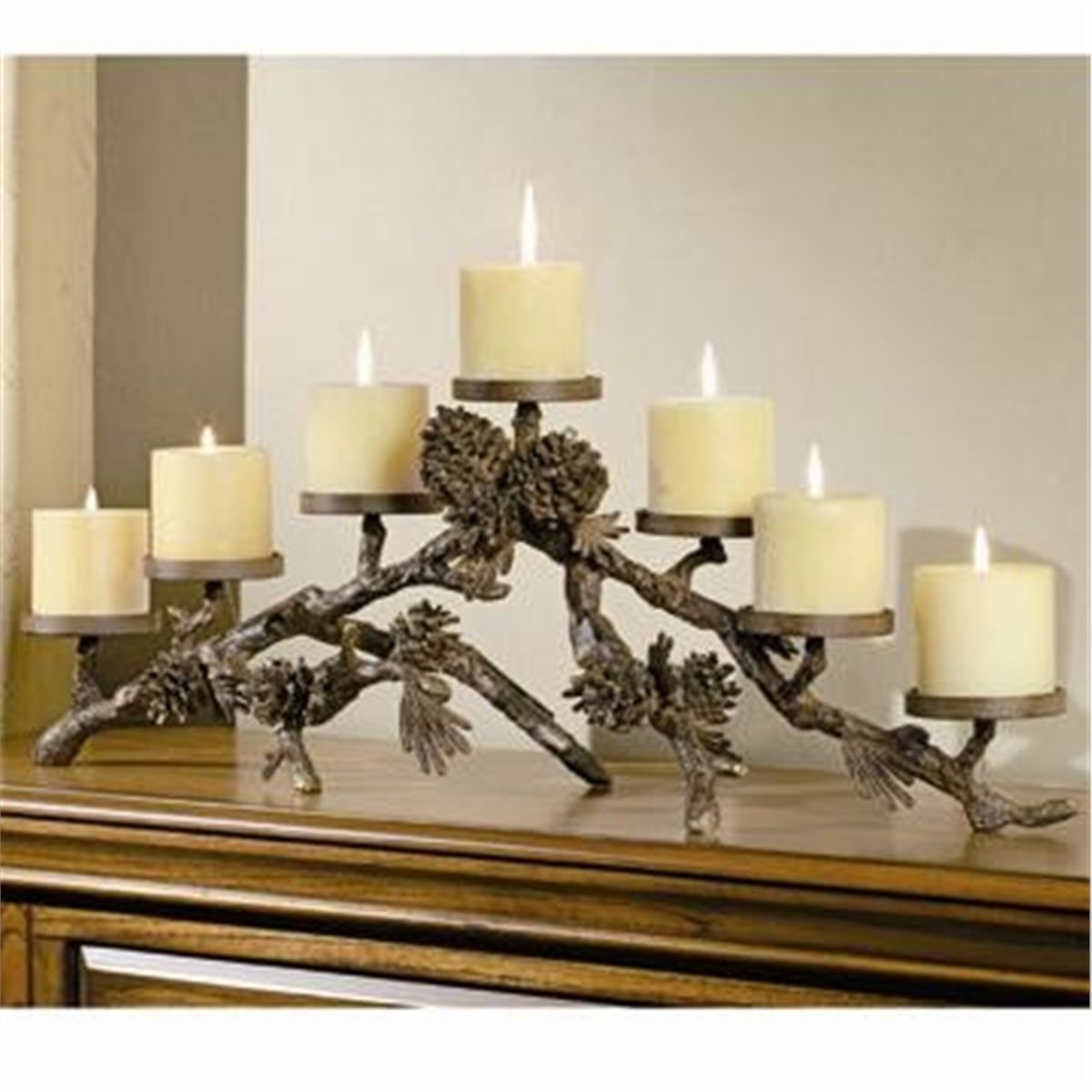 Pinecone Mantlepiece Candle Holder - 10"H 29"W 8"D - Aluminum