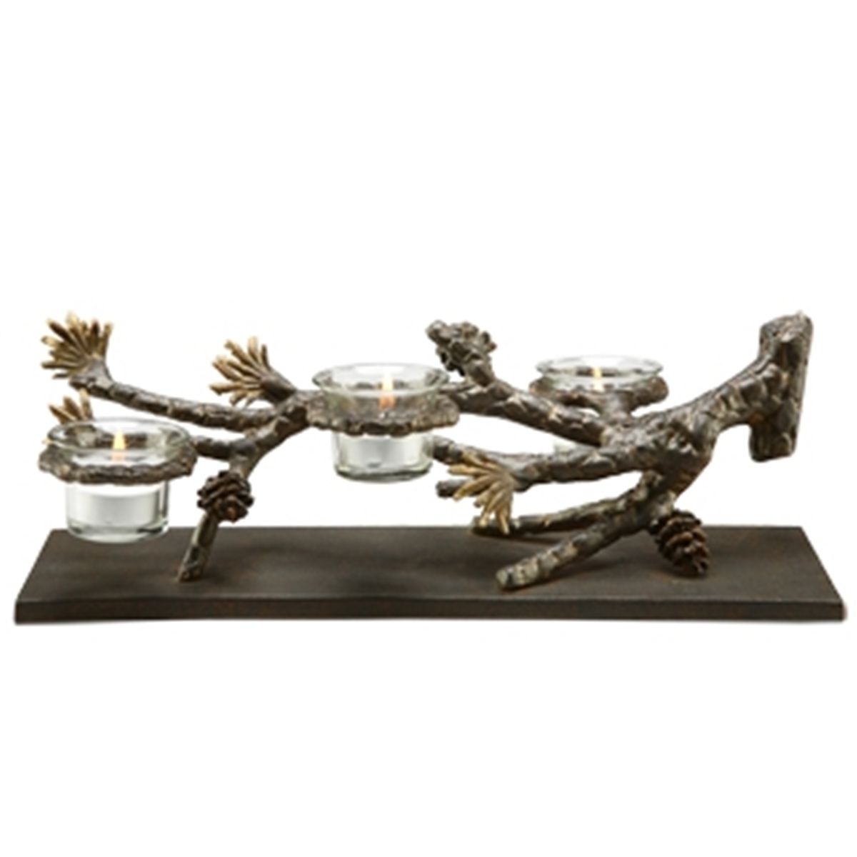 Pinecone Tealight Candelabra - 5"H 15"W 7"D - Aluminum & Glass