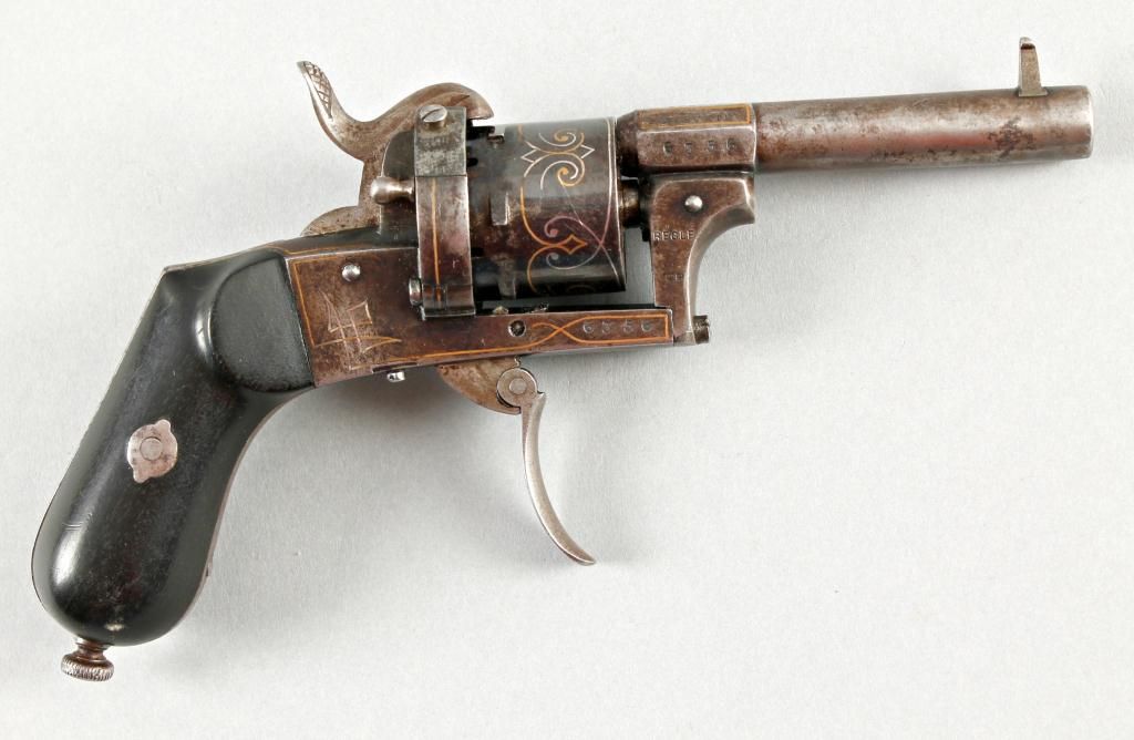 Pinfire Cal 7.5mm SN:6356High quality revolver Circa 1860-1865, signed Arendt on BBL, gold and silv