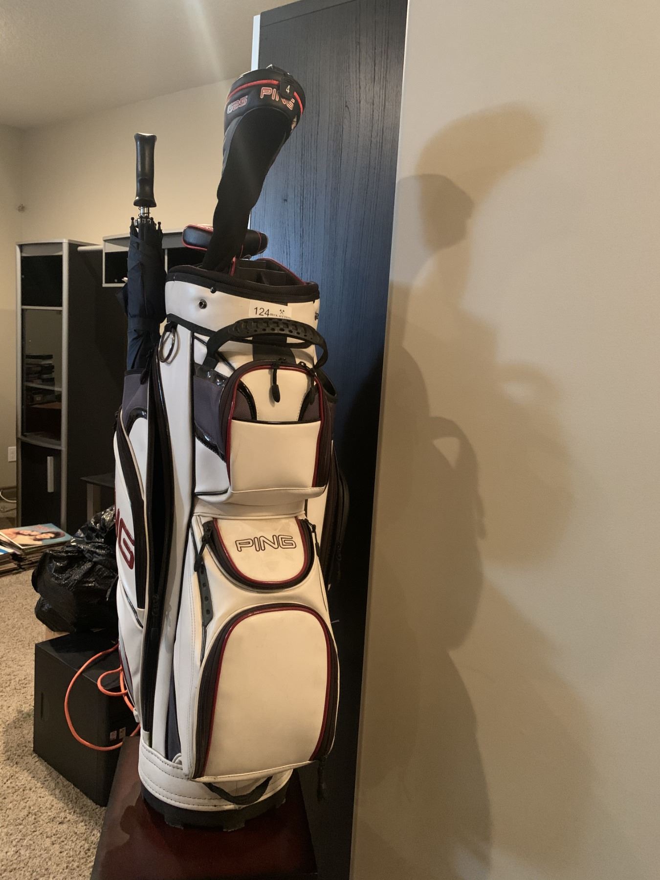 Ping Golf Club Bag, with 1 Ping G25 Driver & 1 Pro-X Putter & Umbrella