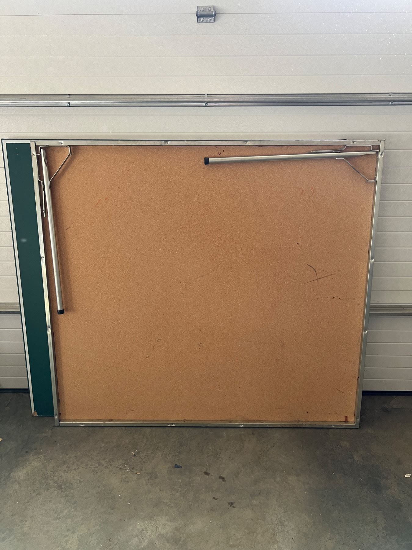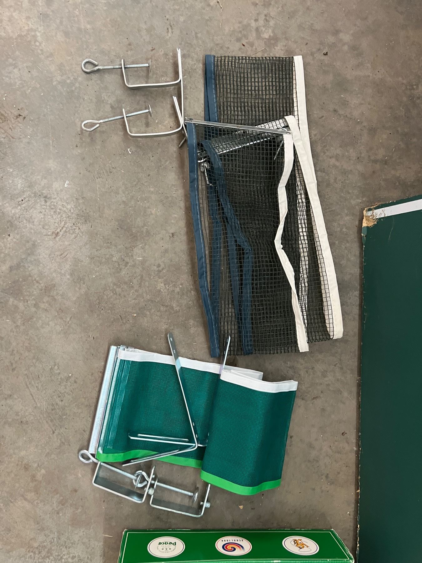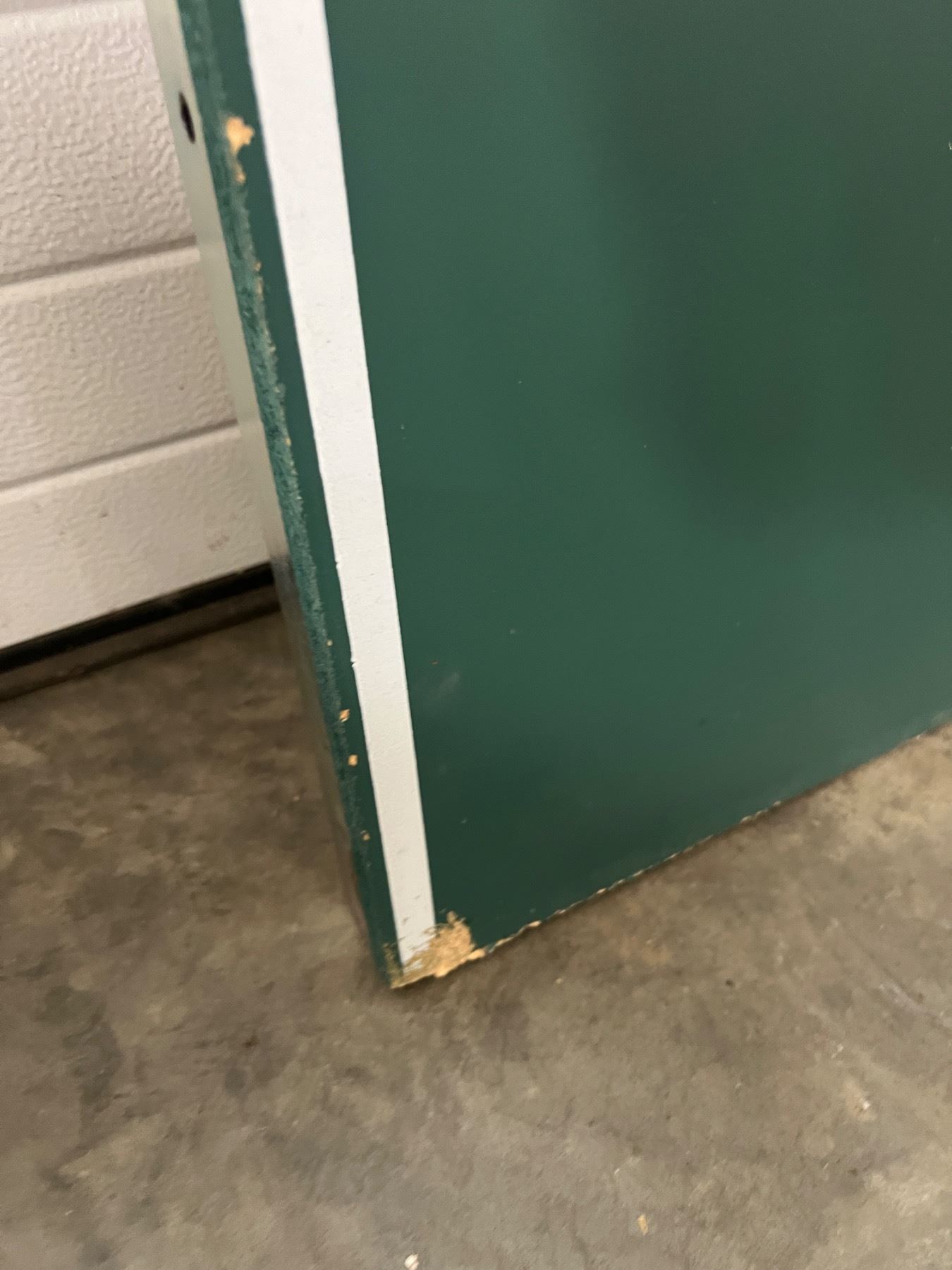 Full size ping pong table, currently not put together but each of the two pieces measure 60"W x 54"L, some chips and wear to the green paint