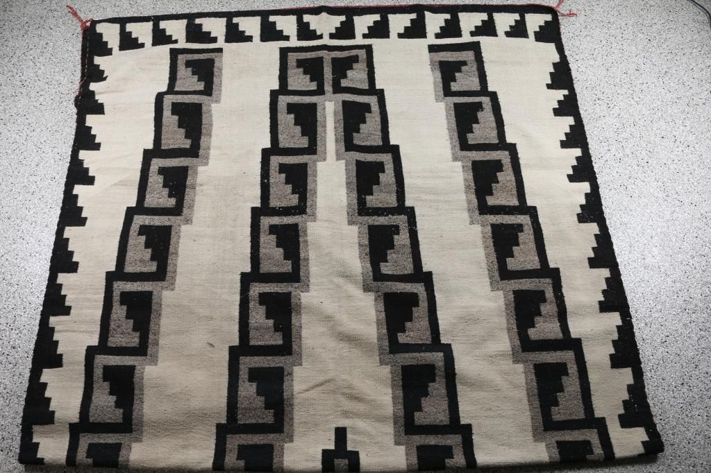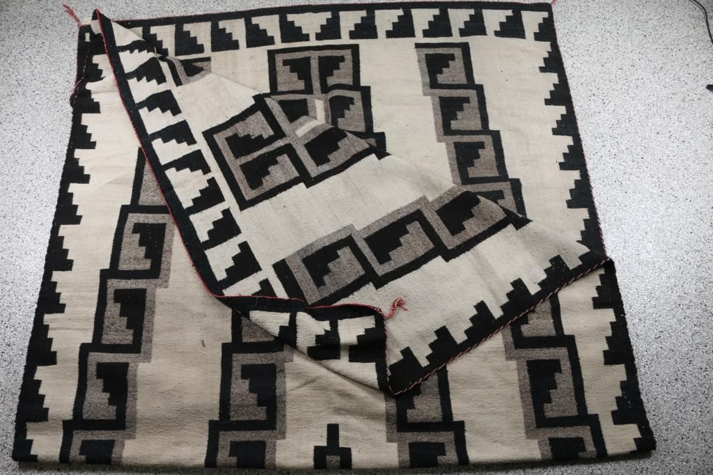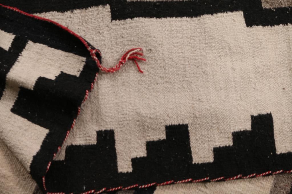 In traditional white, black and grey. In overall very good condition. With original name tag from Anna May Tso. 79 x 152". From the Steve Goldstein Collection, Scottsdale, AZ.