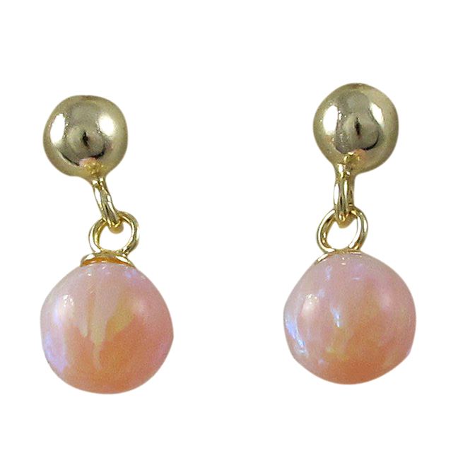 Pink 6Mm Opal Ball On Gold Tone Sterling Silver Post Short Earrings, 14Mm Long