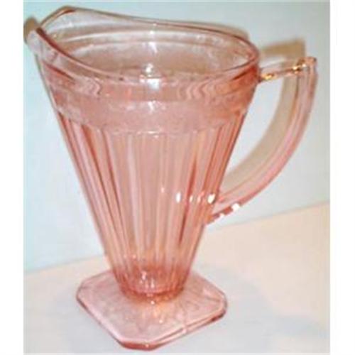 This fantastic Pink Footed Depression Glass Adam Pitcher is in SUPERIOR condition with no chips, cracks, or dings and no scratches. The pitcher was manufactured by Jeannette Glass Company c: 1932-1934 and it measures about 7" from spout to handle and stands 8" tall.