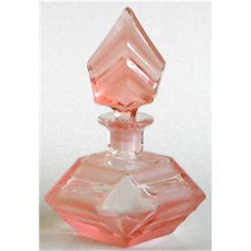 <tr><td>Title:Pink Art Glass Geometric Perfume Bottle</td></tr>