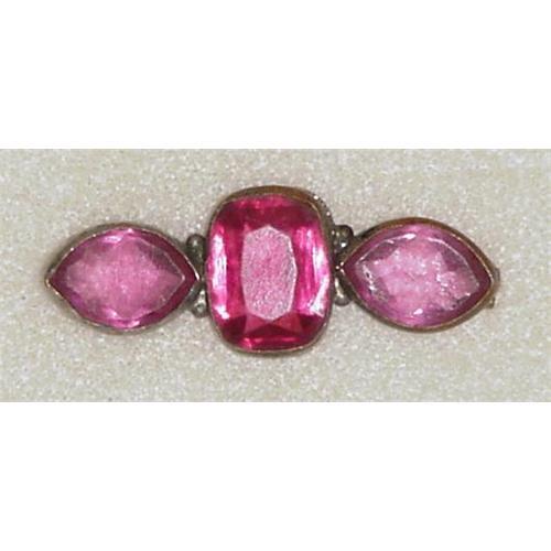 Victorian bar pin. Silver plated brass mounting, set with three pink glass faceted stones. Handmade.