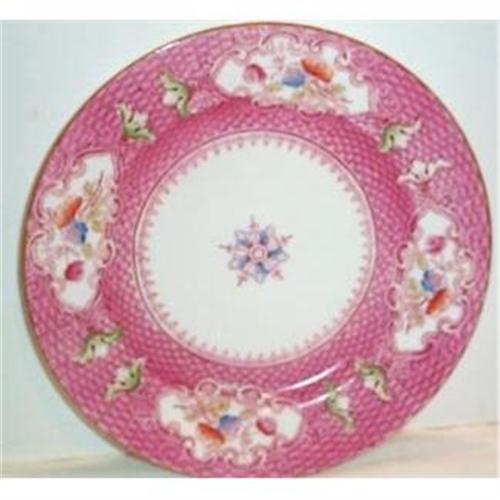 <tr><td>Title:Pink Basketweave and Floral Transferware Plate</td></tr>