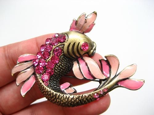 Pink Crystal Rhinestone & Enamel Koi Fish Brooch, measures approx 2in L x 2.5in W MWF2348