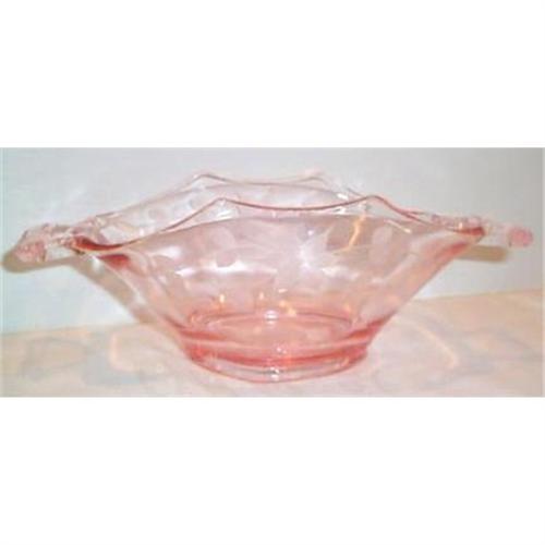 <tr><td>Title:Pink Depression Cut Two Handled Bowl</td></tr>
