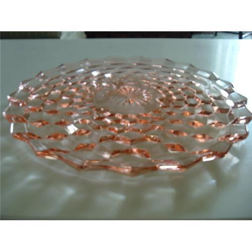 <tr><td>Title:Pink Depression Glass 12" Cake Plate</td></tr>