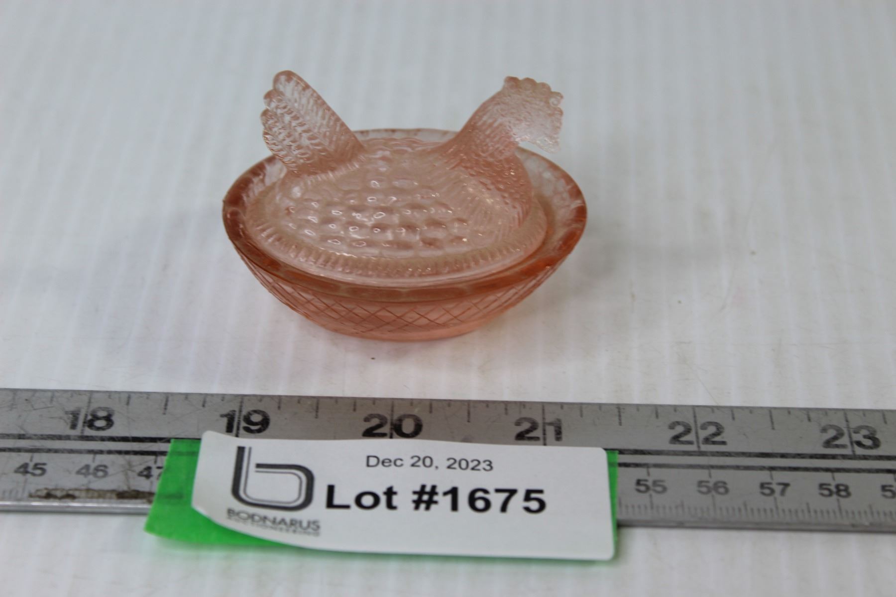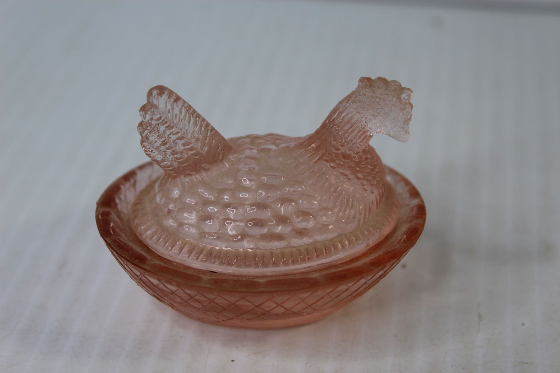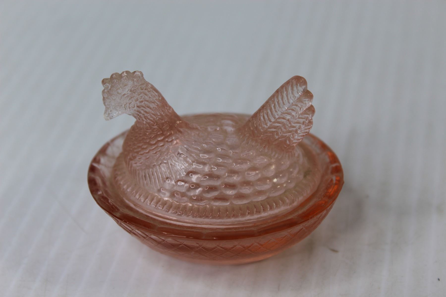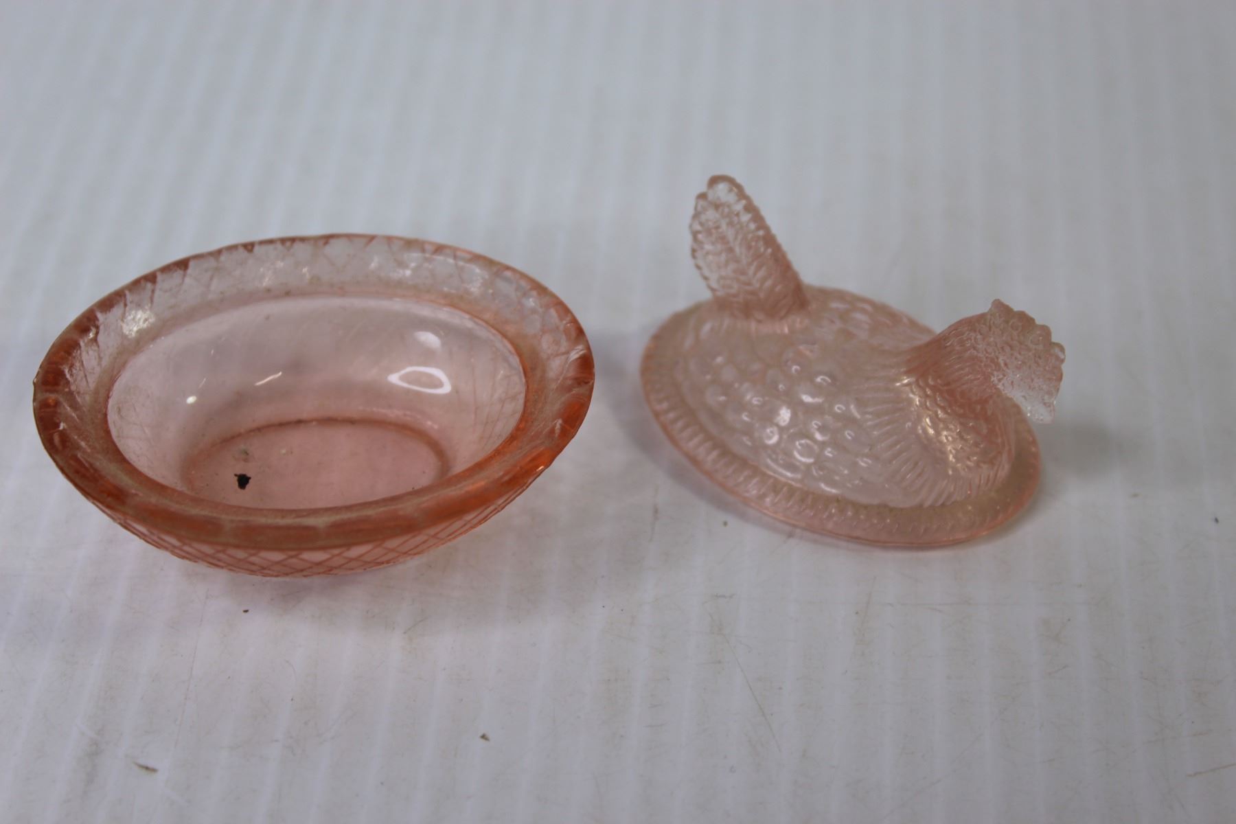 Pink Depression Glass 2 1/2" Hen in Basket