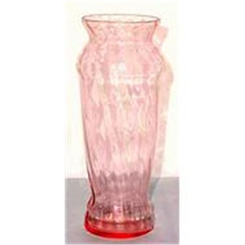 <tr><td>Title:Pink Depression Glass Art Deco Swirl Vase</td></tr>