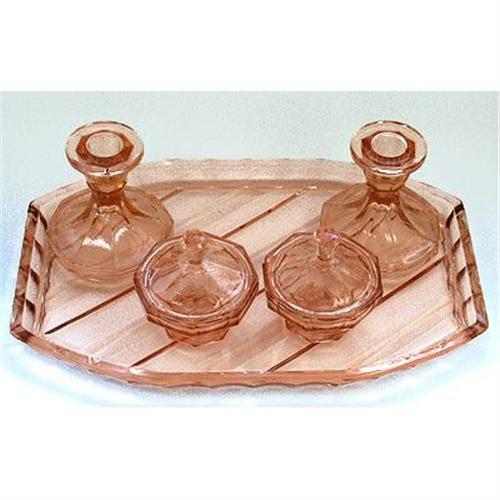 <tr><td>Title:Pink Depression Glass Art Deco Vanity Set</td></tr>