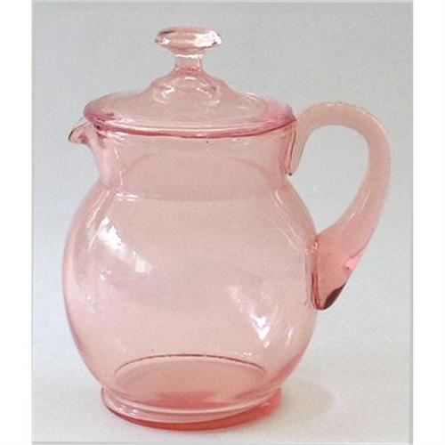 <tr><td>Title:Pink Depression Glass Covered Syrup Pitcher</td></tr>