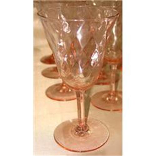 <tr><td>Title:Pink Depression Glass Diamond Optic Goblet Set</td></tr>