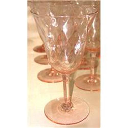 <tr><td>Title:Pink Depression Glass Diamond Optic Goblet Set </td></tr>