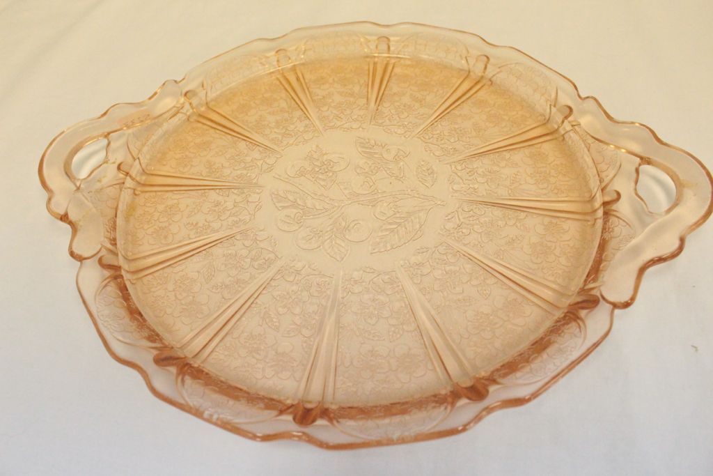 Pink Depression Glass "Flower Pattern" Serving Plate