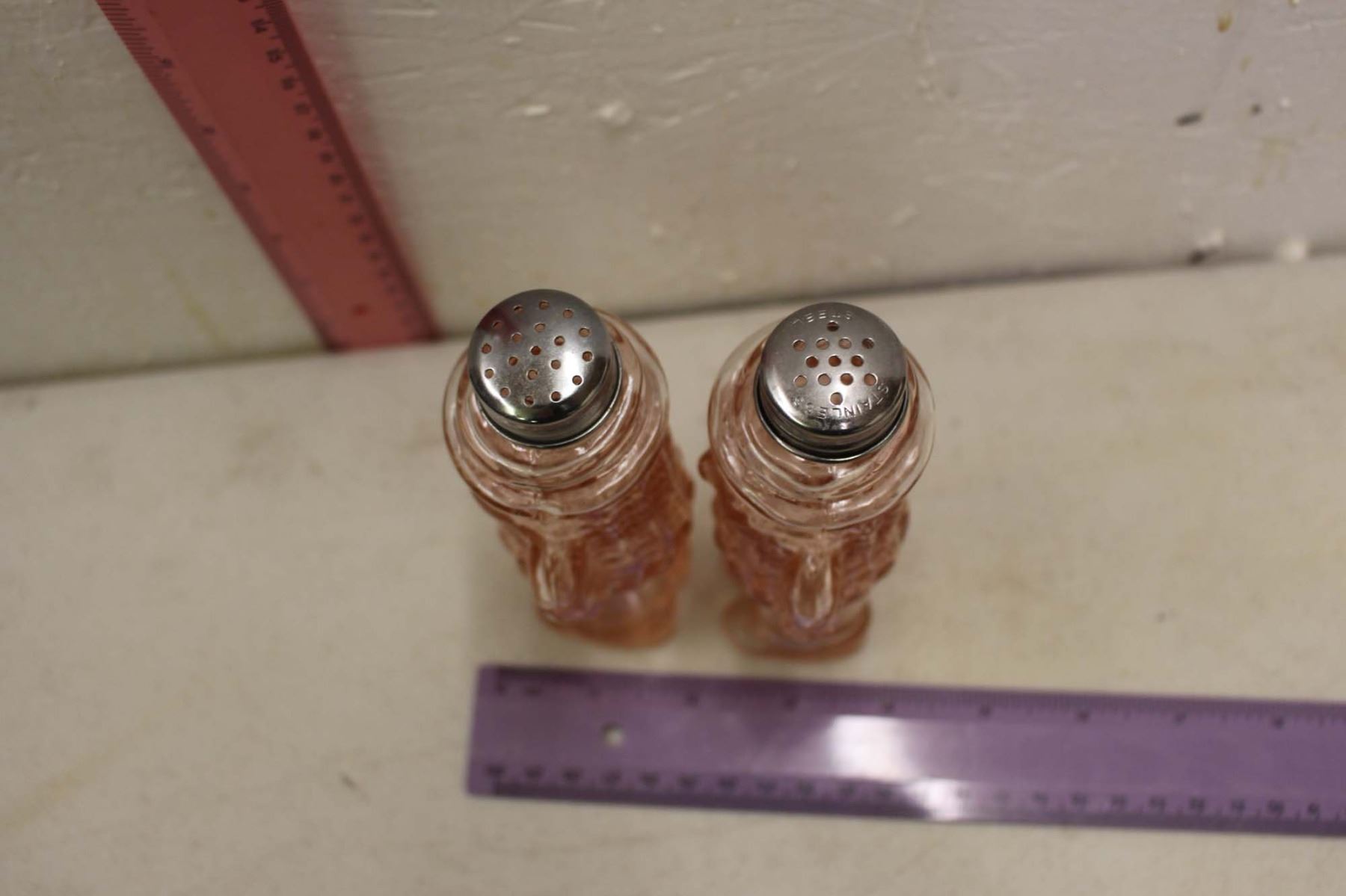 Pink Depression Glass Mr.Peanut Salt & Pepper Shakers