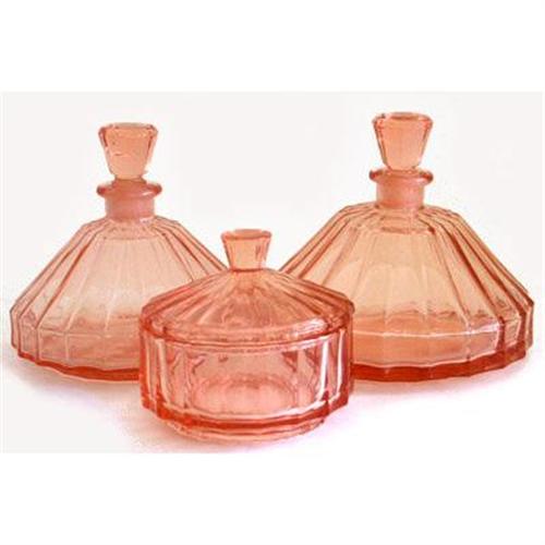<tr><td>Title:Pink Depression Glass Perfume Bottle Set</td></tr>