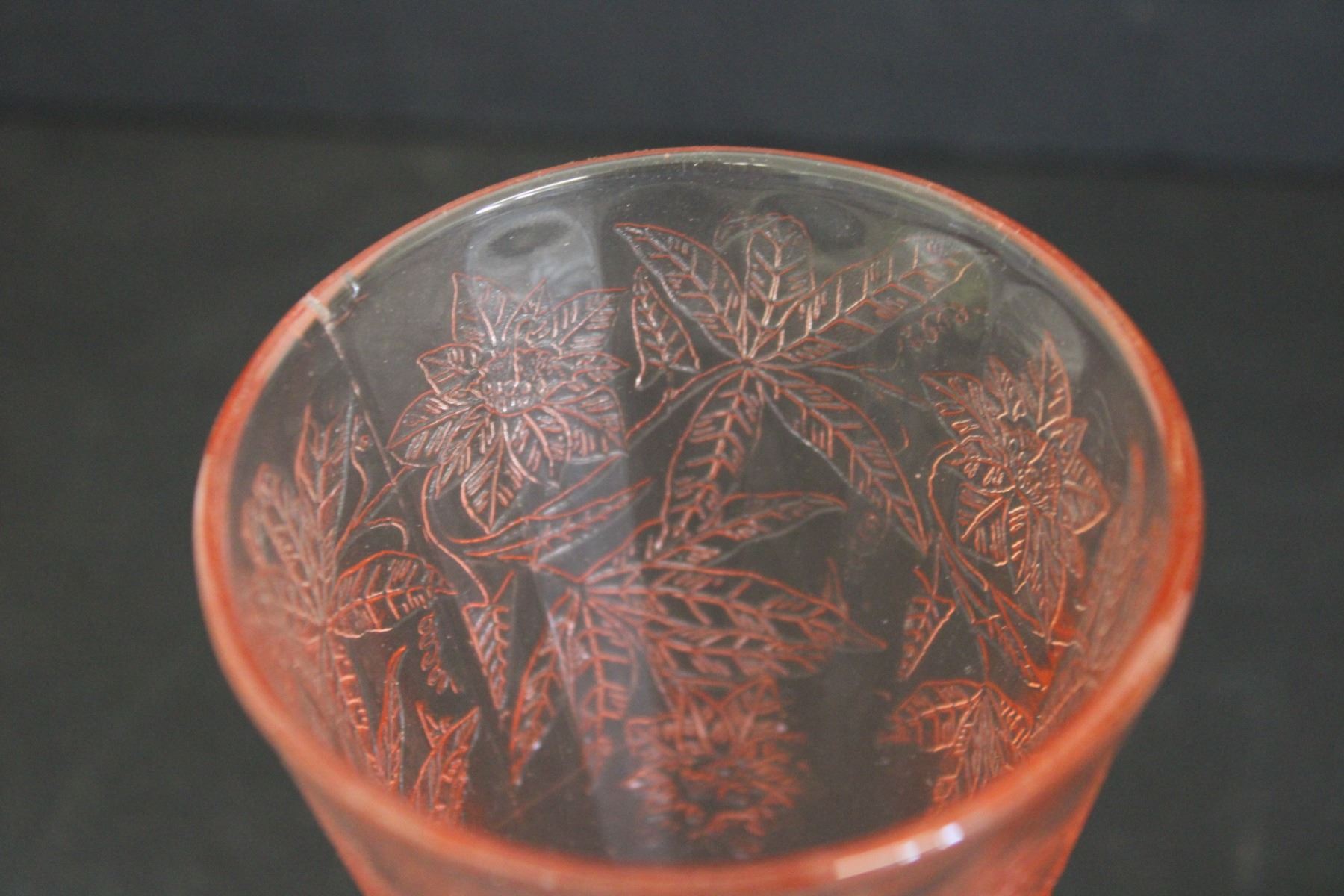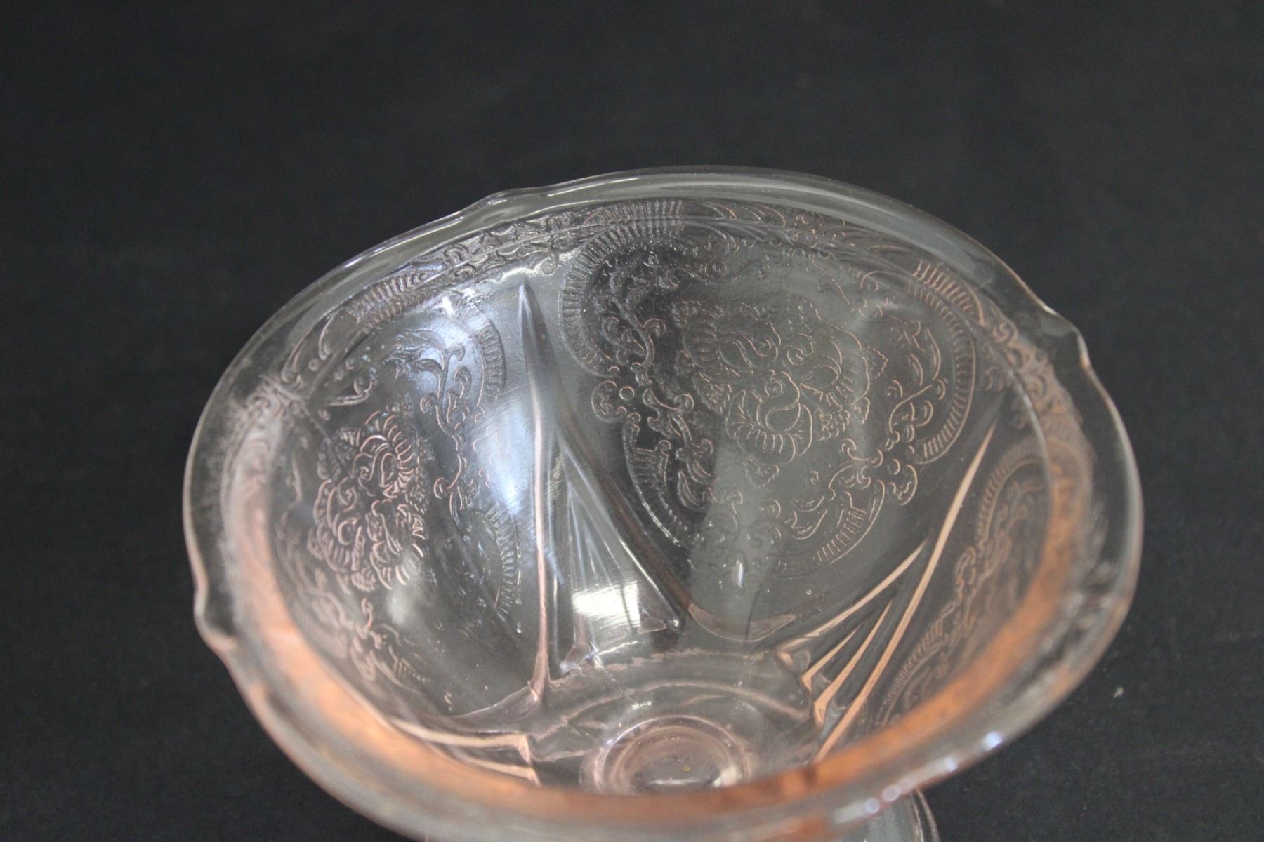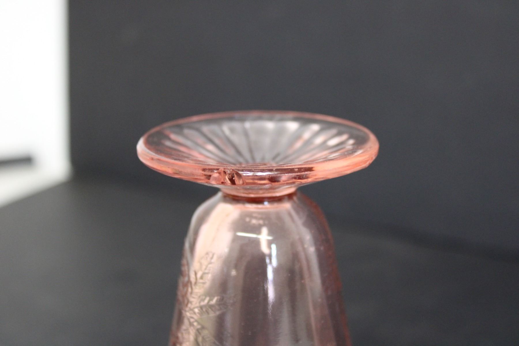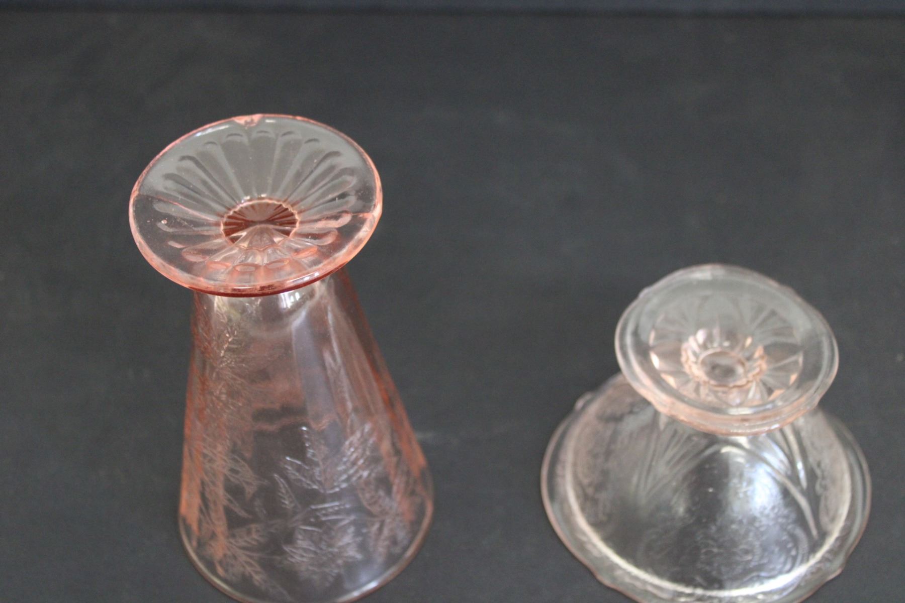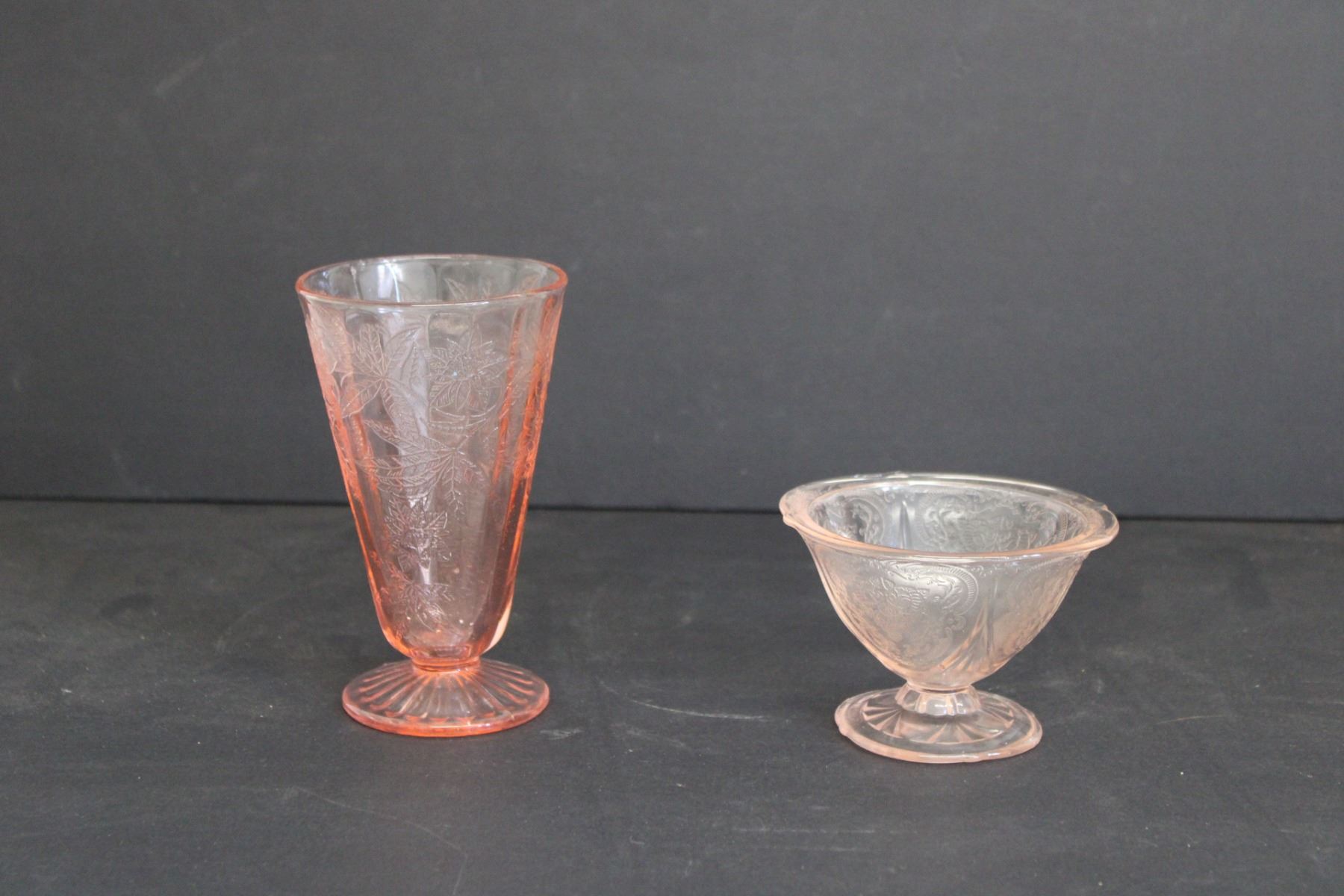 Pink Depression Glass Poinsettia Custard Glass (Small Chip) and Royal Lace Sherbert Glass