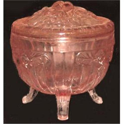 <table width="100%" border="0" cellspacing="0" cellpadding="4"><tr><td><em> </em></td></tr><tr> <td width="100%"> This very pretty pink Depression glass powder jar features a lid pressed with a 1/2 dozen roses and a footed bowl with a surround of similar roses. Measuring about 4" tall. This elegant powder jar and its lid are both in excellent condition. </td></tr><tr> <td> </td></tr><tr> <td>Reference #: tsPDGRFPJ1</td></tr><tr><td>Condition:Excellent</td></tr><tr><td>Year:1930s</td></tr><tr><td>Title:Pink Depression Glass ROSES Ftd Powder Jar</td></tr><tr><td>Location:Orlando, Florida</td></tr></table>