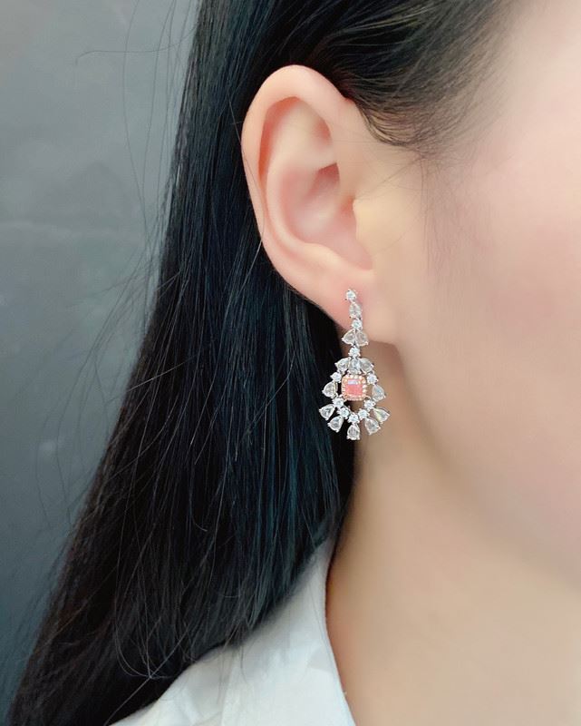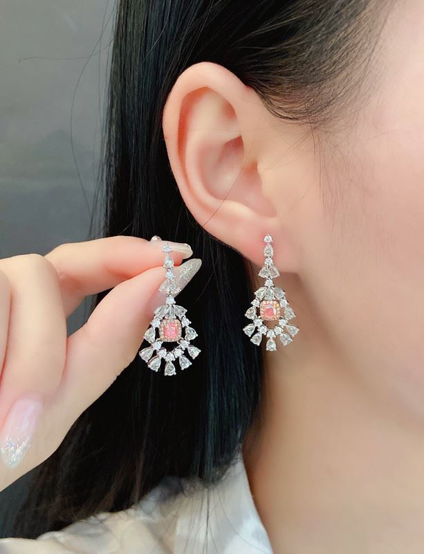 These pink diamond earrings feature rare pink diamonds at the center, surrounded by layers of brilliant white diamonds arranged in a radiant design. The soft blush hue of the pink diamond contrasts beautifully with the sparkling brilliance of the white stones, creating a perfect harmony of romance and elegance. Exquisitely crafted and timelessly stylish, these earrings embody luxury and refined femininity.Main diamond: 0.67 ct, side diamonds: 1.97 ct.Note: GIA Natural Diamond Report.