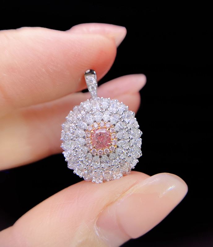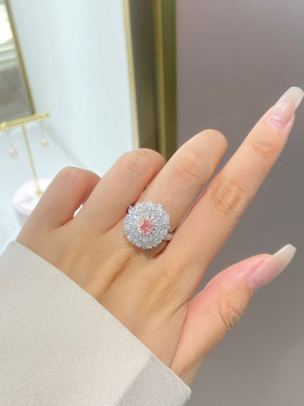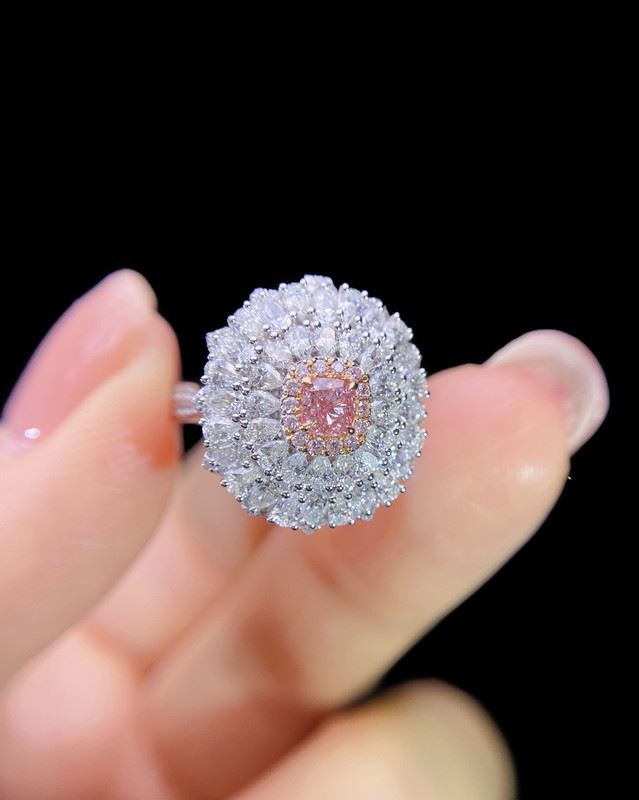 This pink diamond engagement ring features a captivating pink square diamond at the center, surrounded by delicate pear-shaped and round diamonds, designed to resemble a blooming flower. The brilliant sparkle of each diamond blends together, highlighting the unique charm of the ring.Ring size: 6, circumference: 52 mm, diameter: 16.6 mm, main diamond: 0.27 ct, side diamonds: 1.59 ct. Note: Comes with a GIA Natural Diamond Report.