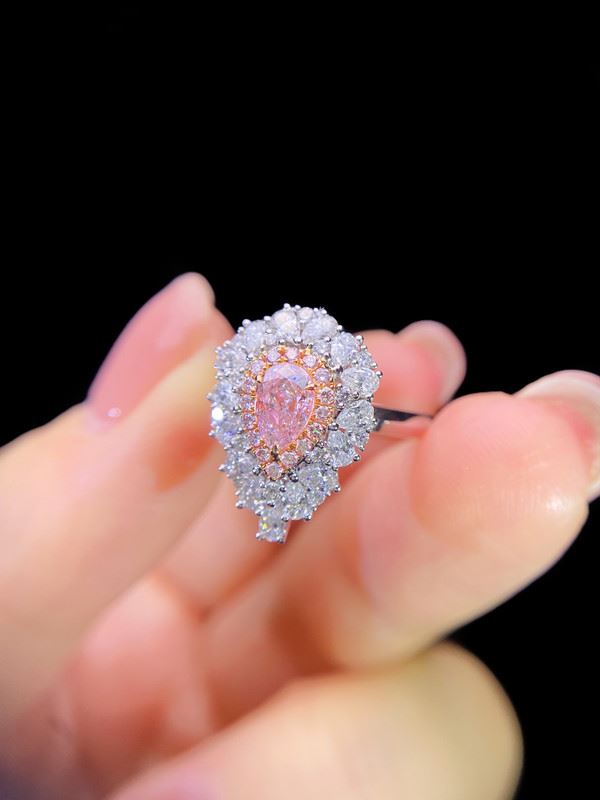 The GAI Pink Diamond Teardrop Ring features a rare pink diamond at its center, surrounded by layers of dazzling white diamonds in an elegant teardrop design. The soft blush hue of the pink diamond beautifully contrasts with the brilliant sparkle of the surrounding stones, creating a perfect harmony of grace and luxury. This exquisite piece captures timeless femininity and refined sophistication, making it ideal for both special occasions and daily elegance.Ring size: 6, circumference: 52 mm, diameter: 16.6 mm, main diamond: 0.50 ct, side diamonds: 0.975 ct.Note: GIA Natural Diamond Report.