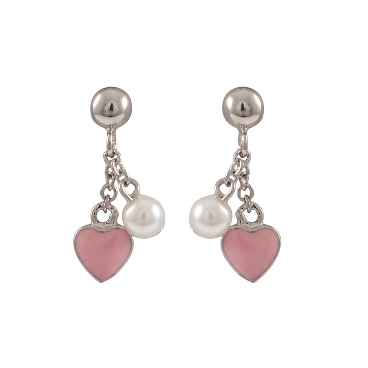 Pink Enamel Heart, 5Mm Pink Pearl, Gold Over Sterling Silver Post Earrings