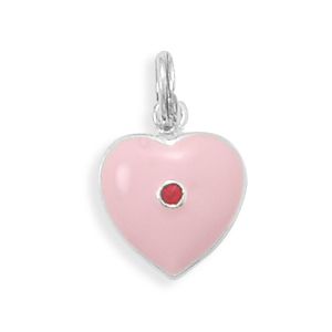 11.5mm pink enamel heart features a 2mm red crystal. .925 Sterling Silver