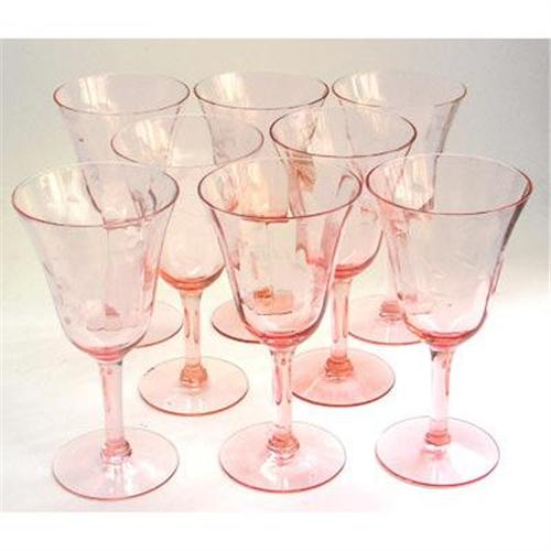 <tr><td>Title:Pink Etched Depression Glass 6 1/2in Stems (8)</td></tr>