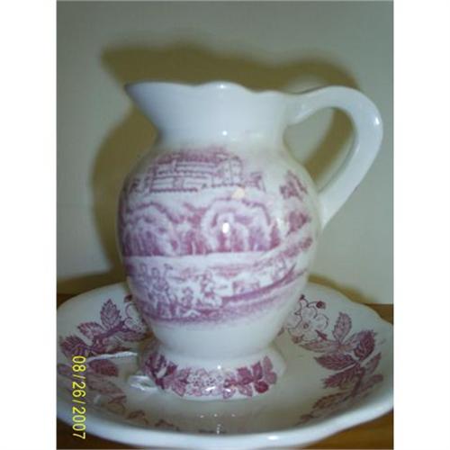 <tr><td>Title:Pink Floral (Rose) Colonial Pitcher & Saucer</td></tr>
