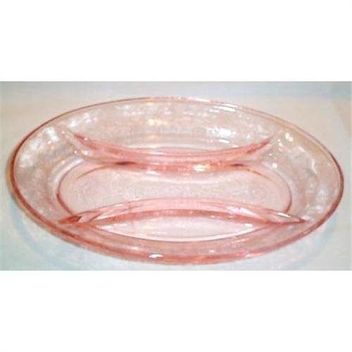 This fantastic Pink Florentine No. 2 Divided Relish is in SUPERIOR condition with no chips, cracks, or dings and it measures 6.50" wide and is 10" long. Florentine No. 2 was manufactured by Hazel Atlas Glass Company c: 1932-1935.
