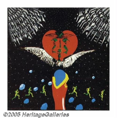 <B>Pink Floyd Handbill (Pinnacle, 1968).</B></I> Among the more sought-after items for collectors of Pink Floyd are the posters and handbills from their early tours. The items from shows at the Shrine Auditorium in Los Angeles are considered especially desirable. This handbill is Near Mint and features art by Van Hammersfeld. Also on this bill was the Jeff Beck Group and Blue Cheer. Overall size of this piece is 4.5" x 4.5".