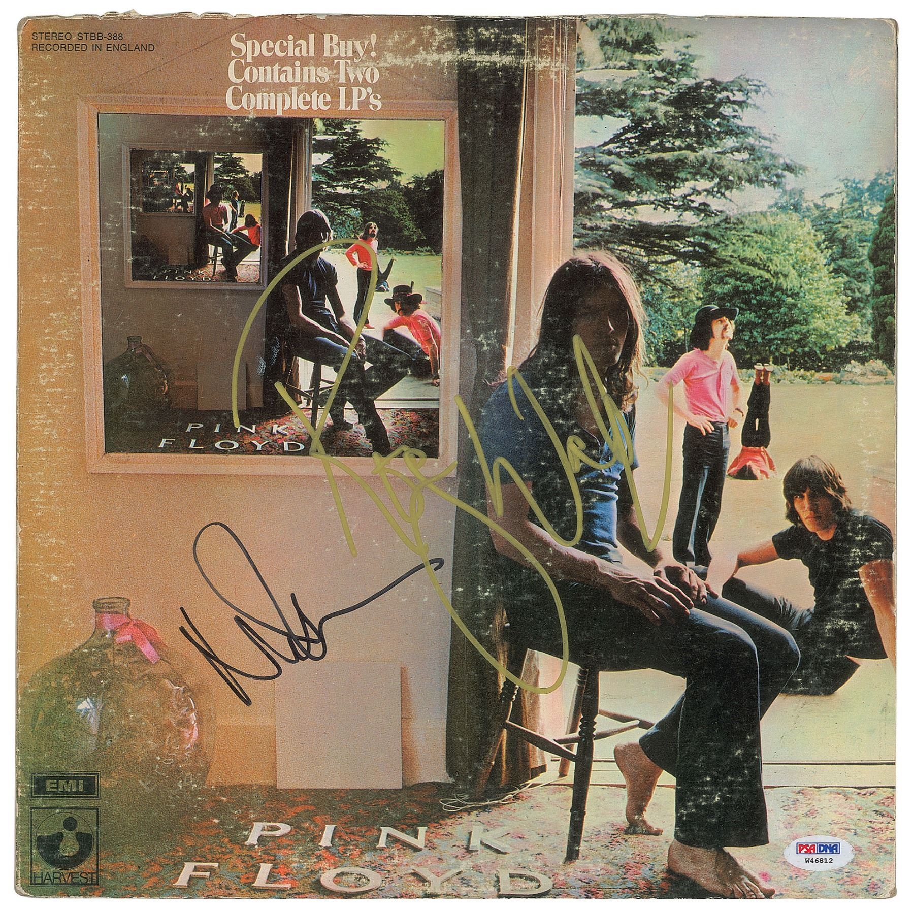 Ummagumma album by Pink Floyd, signed on the front cover in gold ink by Roger Waters and in black felt tip by Nick Mason. In very good to fine condition, with scuffing and edge wear and a PSA/DNA label affixed to lower right corner. The record is not included. Accompanied by a certificate of authenticity from PSA/DNA.