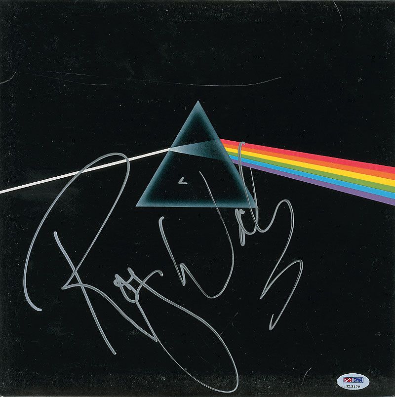 Dark Side of the Moon album signed on the front cover in silver ink. In fine condition, with a PSA/DNA authentication label affixed to lower corner. The record is included. Accompanied by a full letter of authenticity from Roger Epperson/REAL and a certificate of authenticity from PSA/DNA.