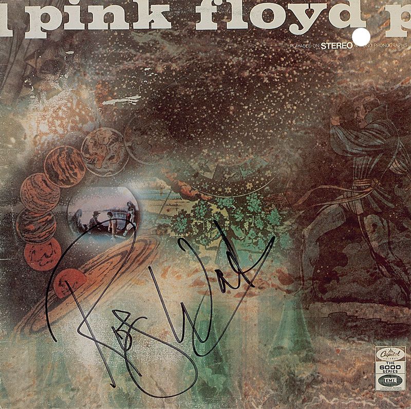 A Saucerful of Secrets album signed on the front cover in black felt tip. In fine condition, with a punch hole to top right and some scattered light surface loss. The record is not included. Accompanied by a letter of authenticity from James Spence.