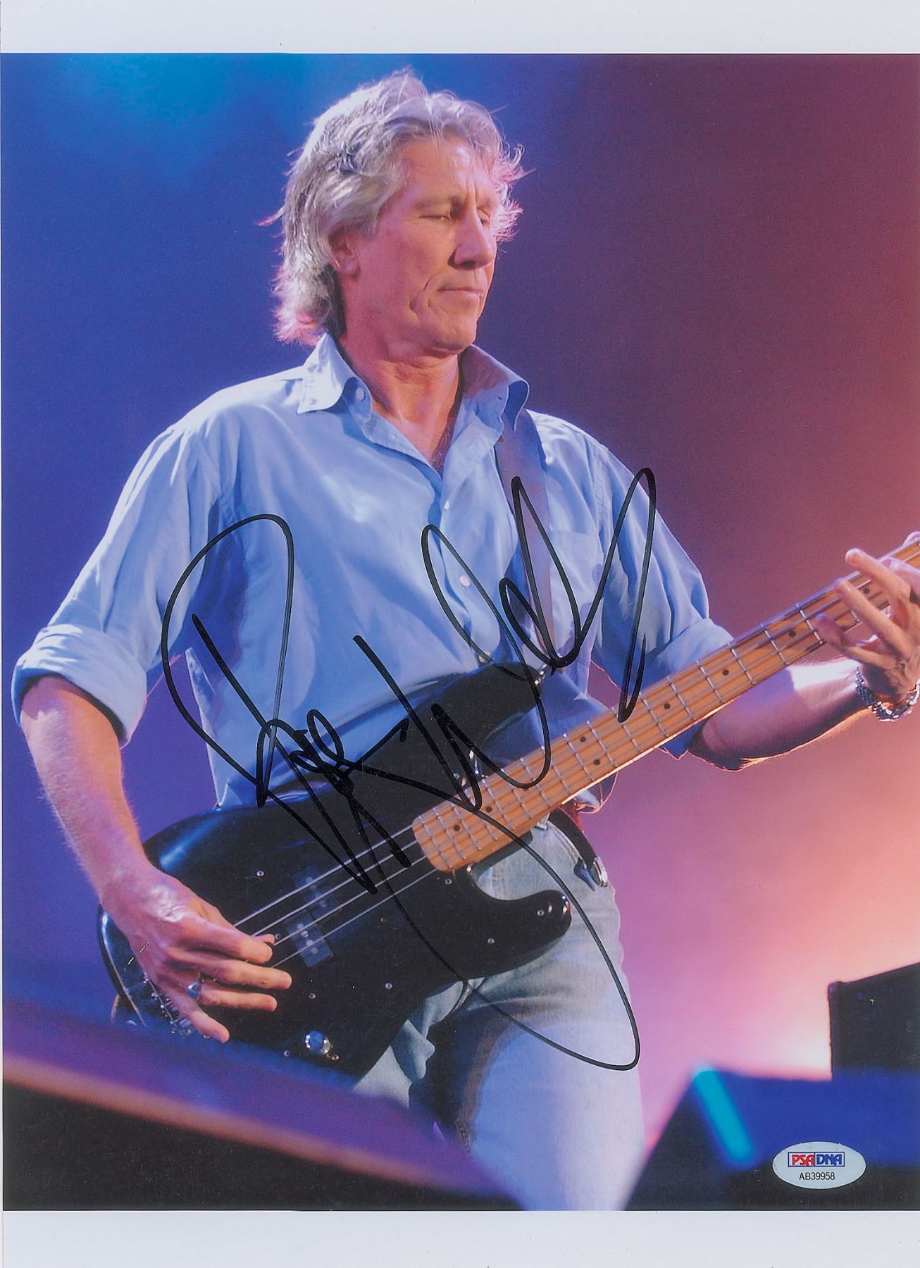 Color glossy 10 x 14 photo of the Pink Floyd bassist during a performance, signed prominently in black felt tip by Roger Waters. In very good to fine condition, with scattered light creasing, a heavier diagonal crease to the upper left background, and a PSA/DNA label affixed to lower right corner. Accompanied by a certificate of authenticity from PSA/DNA.