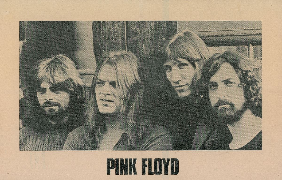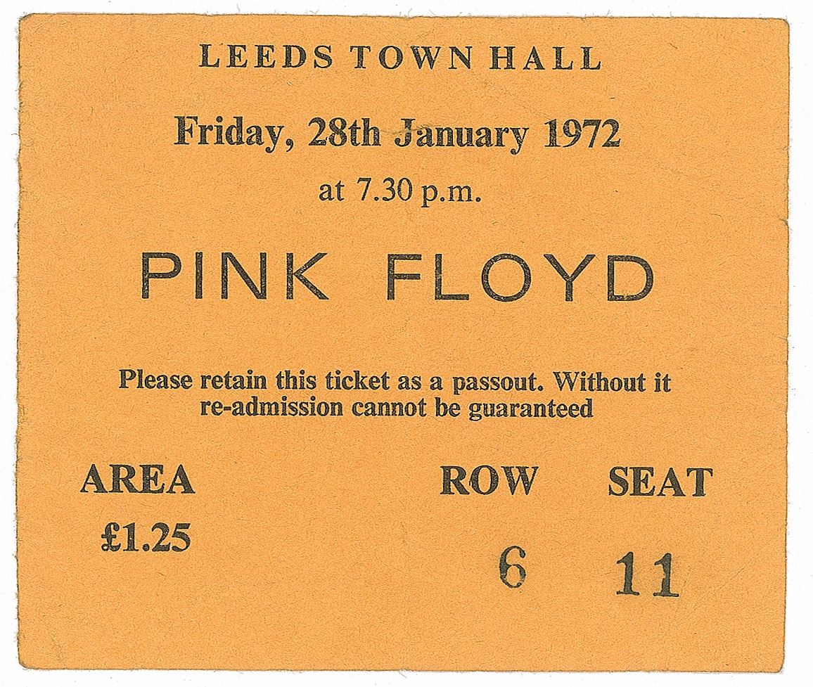 Exceedingly rare unofficial 1972 UK Dark Side of the Moon tour program, six pages, 8.5 x 11, signed on the front and back covers in blue ballpoint by all four members of the group: Roger Waters, David Gilmour, Nick Mason, and Richard Wright. The program is unstapled (as issued) and can be opened so that all signatures are displayed. In very good condition, with central vertical and horizontal folds, moderate overall creasing, and light toning. Included is the original Leeds Town Hall January 28, 1972, ticket stub for the event at which these autographs were obtained.