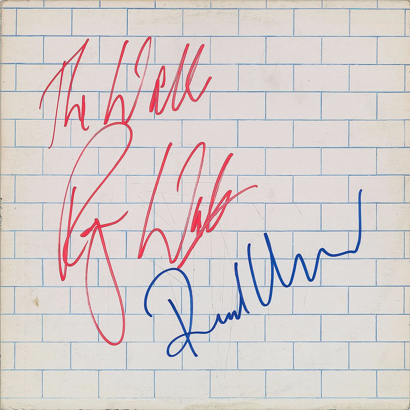 The Wall album signed on the front cover in red felt tip, "The Wall, Roger Waters," and in blue felt tip, "Richard Wright." In fine condition. The record is not included.