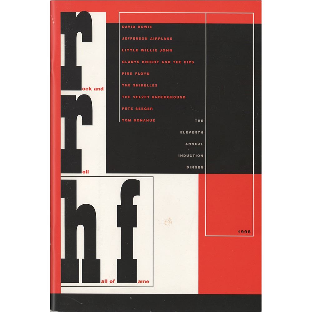 Uncommon original official 1996 Rock and Roll Hall of Fame induction dinner program made in quantities sufficient only for distribution to the attendees of the induction ceremony, held at New York's Waldorf-Astoria Hotel. The high-quality program is 72 pages, 8.25 x 12.25, and features images and biographies of the inductees, including Pink Floyd, David Bowie, The Velvet Underground, Pete Seeger, Jefferson Airplane, and others. In fine condition. These programs were not available to the general public and only given out at the induction ceremony, making them very hard to come by.