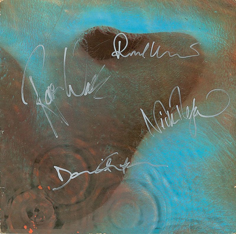 Meddle album signed on the front cover in silver ink by Roger Waters, David Gilmour, Rick Wright, and Nick Mason. General wear to spine and edges, and a few small pieces of tape affixed to reverse, otherwise fine condition. The record is included. Accompanied by a full letter of authenticity from JSA.