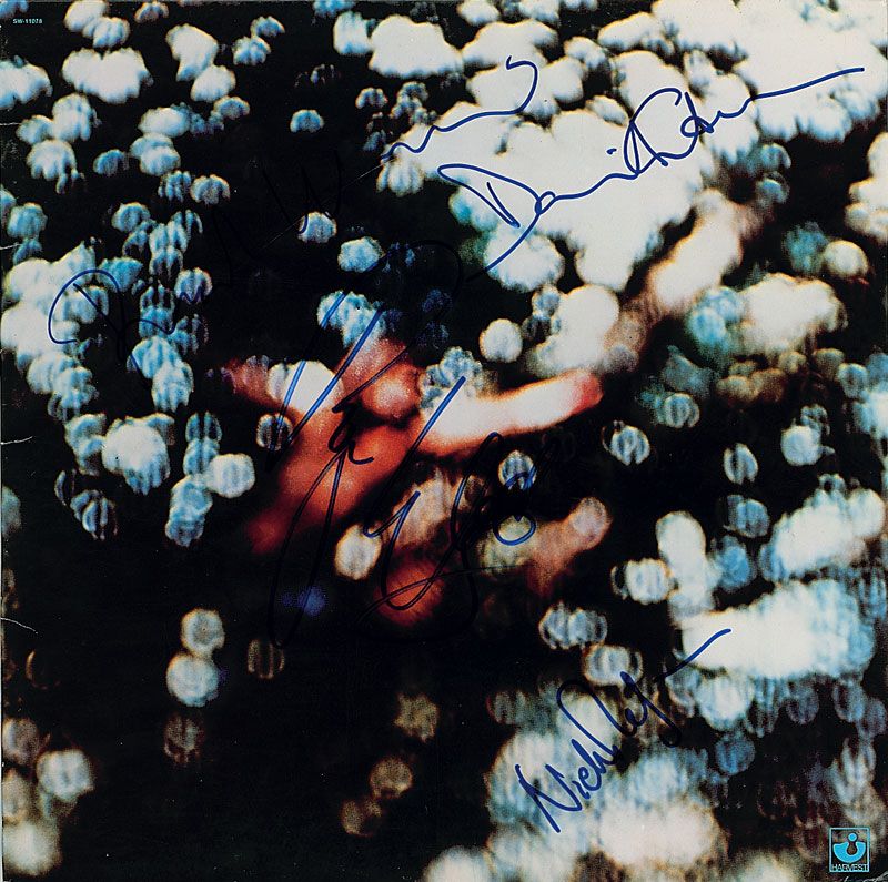 Obscured by Clouds album signed on the front cover in blue felt tip by Roger Waters, David Gilmour, Nick Mason, and Rick Wright. In fine condition, with some light contrast to a couple signatures. The record is not included. Accompanied by a certificate of authenticity from Roger Epperson/REAL.