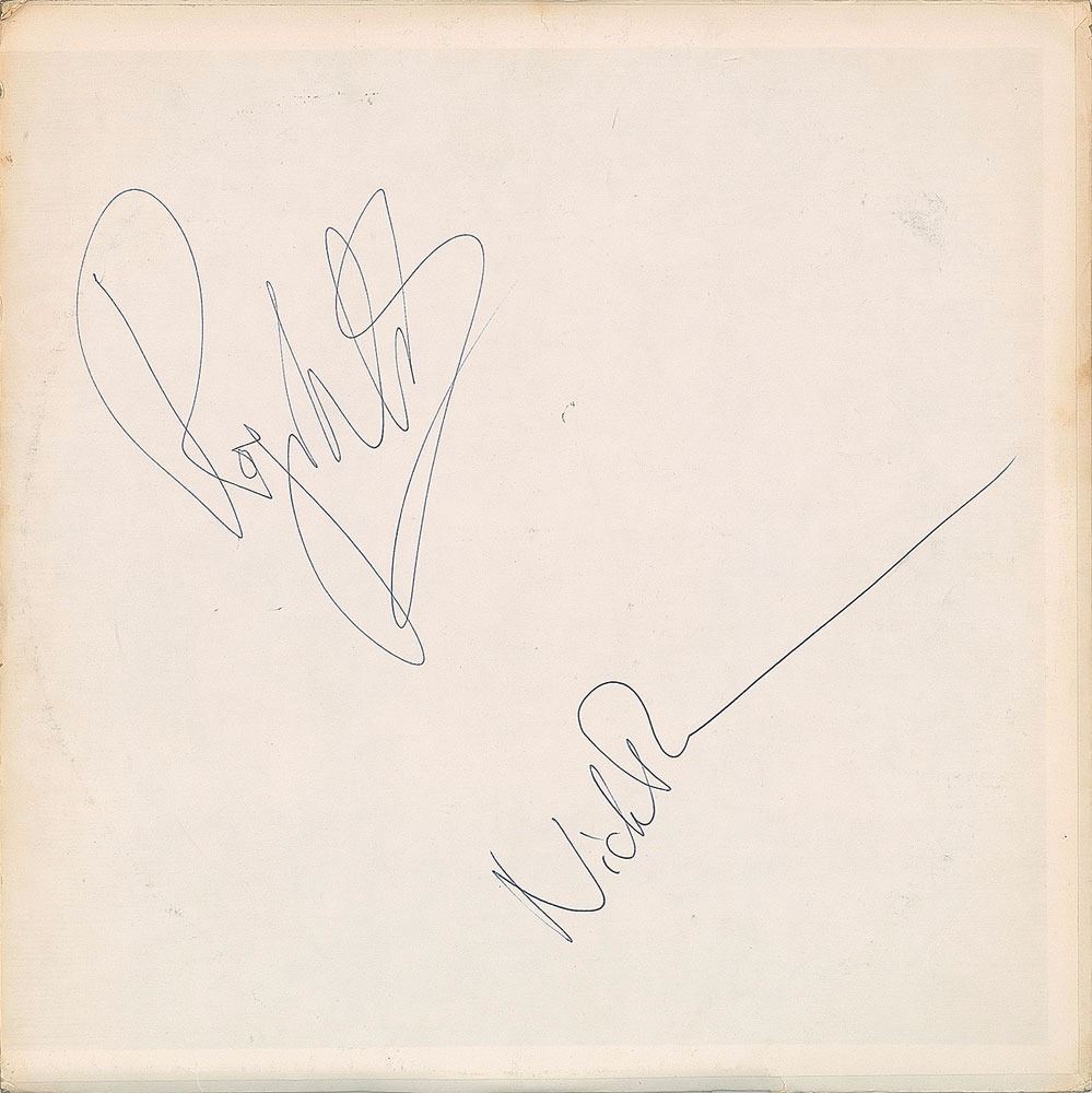 Blank album sleeve with two Dittolino Discs records inside, signed on the cover in black ballpoint by Roger Waters and Nick Mason. In fine condition, with wear and partial separations to the edges. Accompanied by a full letter of authenticity from Beckett Authentication Services.