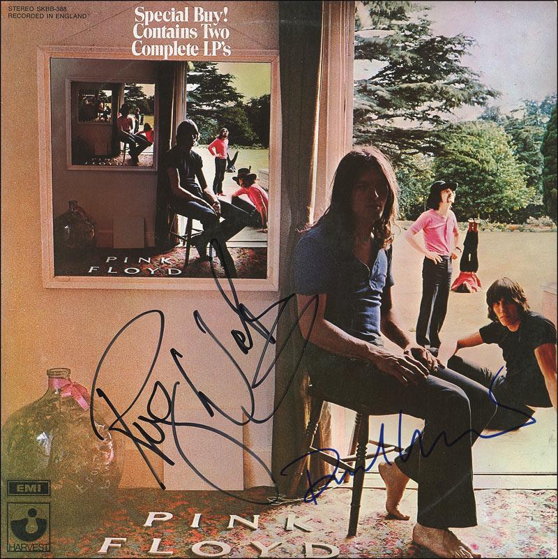 Ummagumma album signed on the front cover in black felt tip by Roger Waters and in blue felt tip by Rick Wright. In fine condition, with some light wear to covers. The record is included. Pre-certified Roger Epperson/REAL and RRAuction COA.
