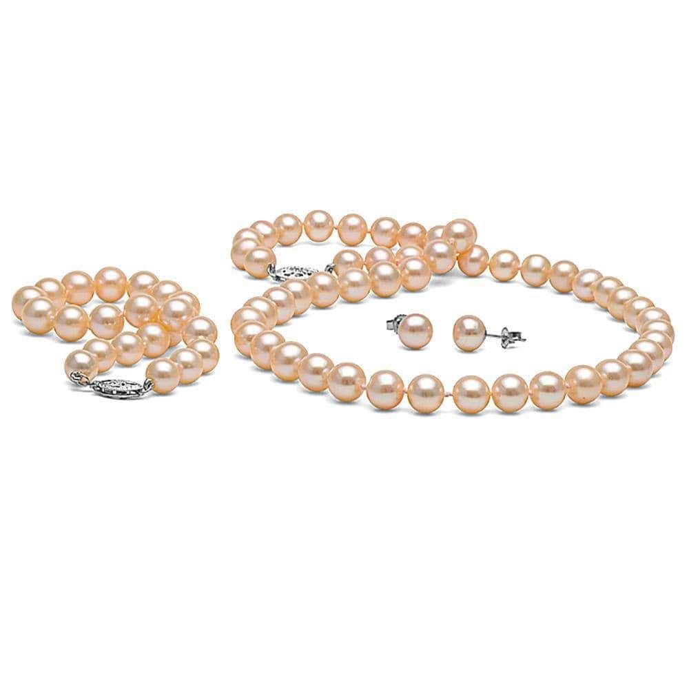 Pink Freshwater Pearl 3-Piece Jewelry Set, 7.5-8.0mm